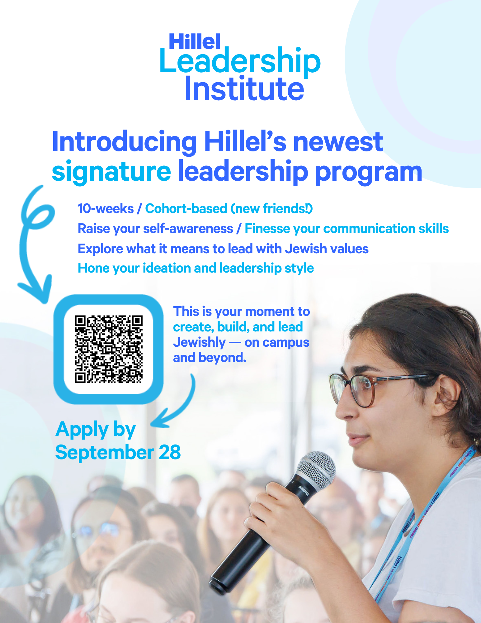 The Hillel Leadership Institute is a 10-session cohort experience that will help students build real leadership skills like communication, collaboration and delegation, and storytelling. Students will connect with a community of peers and leave with the tools to make a bigger impact on campus and beyond. Students earn a $150 stipend upon completion of the program. Apply by September 28. Possible meeting times: